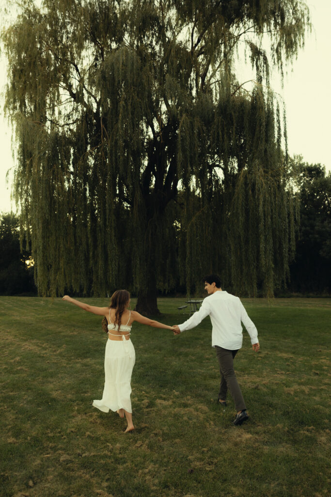 The Perry Nature Reserve is another spot perfect for your engagement photoshoot. There are plenty of trees — including some beautiful willow ones that make for the perfect backdrop. At this location you can get the woodsy backdrop, tall prairie grass, open space, and plenty of flowers that are right next to it at the Mary Jo Wegner Arboretum.